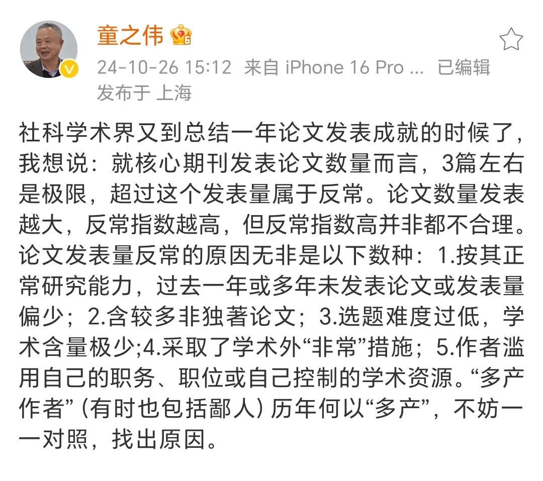 “社科學術界,就核心期刊發(fā)表論文數(shù)量而言,一年三篇左右是極限,超過這個發(fā)表量屬于反常!”