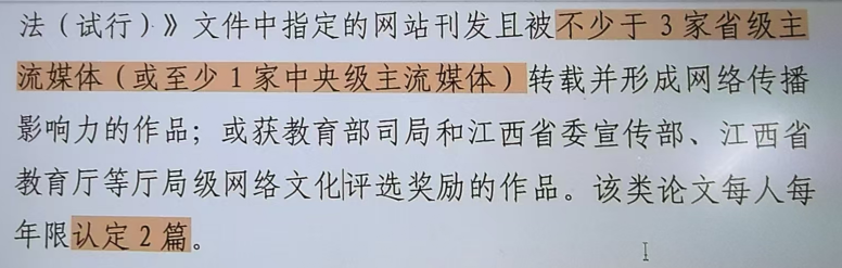 但是,畢竟主流媒體論文評正高,確實(shí)太簡單了,也讓很多人發(fā)出了質(zhì)疑的聲音。有的單位選擇給“網(wǎng)文”再上一道枷鎖,只發(fā)不行,還需要有轉(zhuǎn)載,或者有較大的網(wǎng)絡(luò)傳播影響力,以此來控制單位發(fā)網(wǎng)文的“競爭力”。