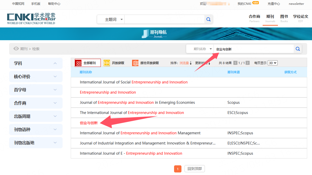 如何在知網上查找《創(chuàng)業(yè)與創(chuàng)新》?